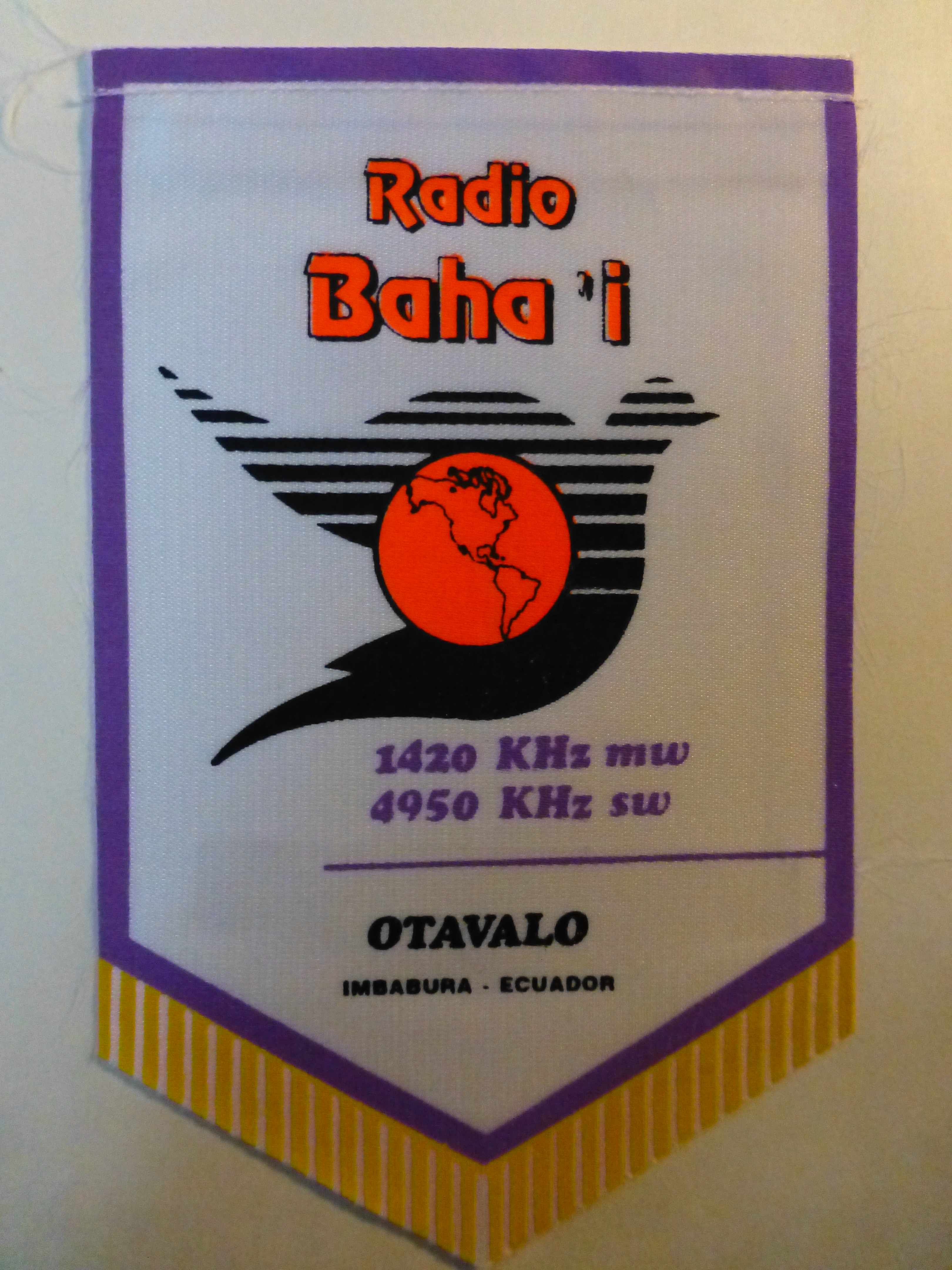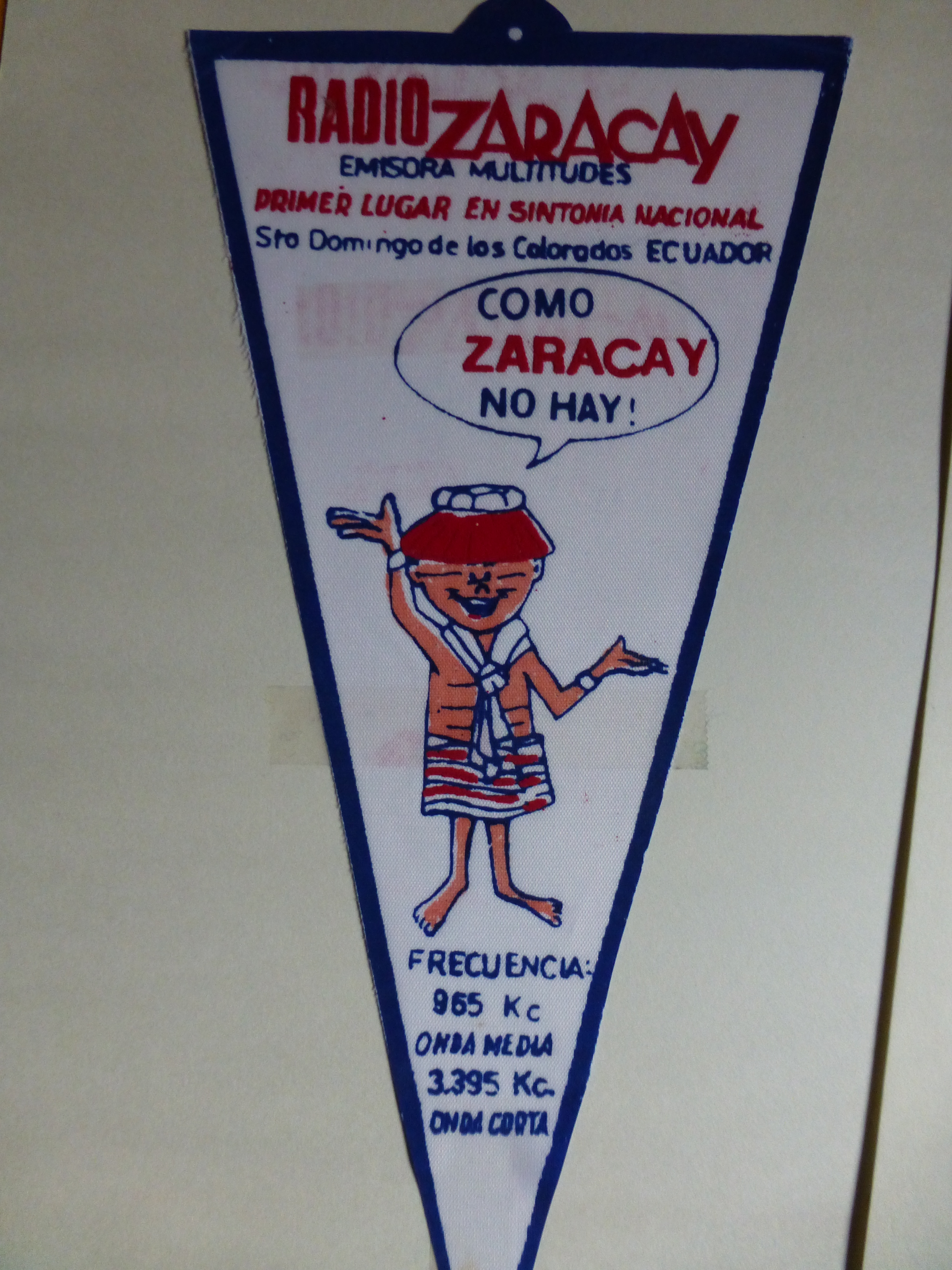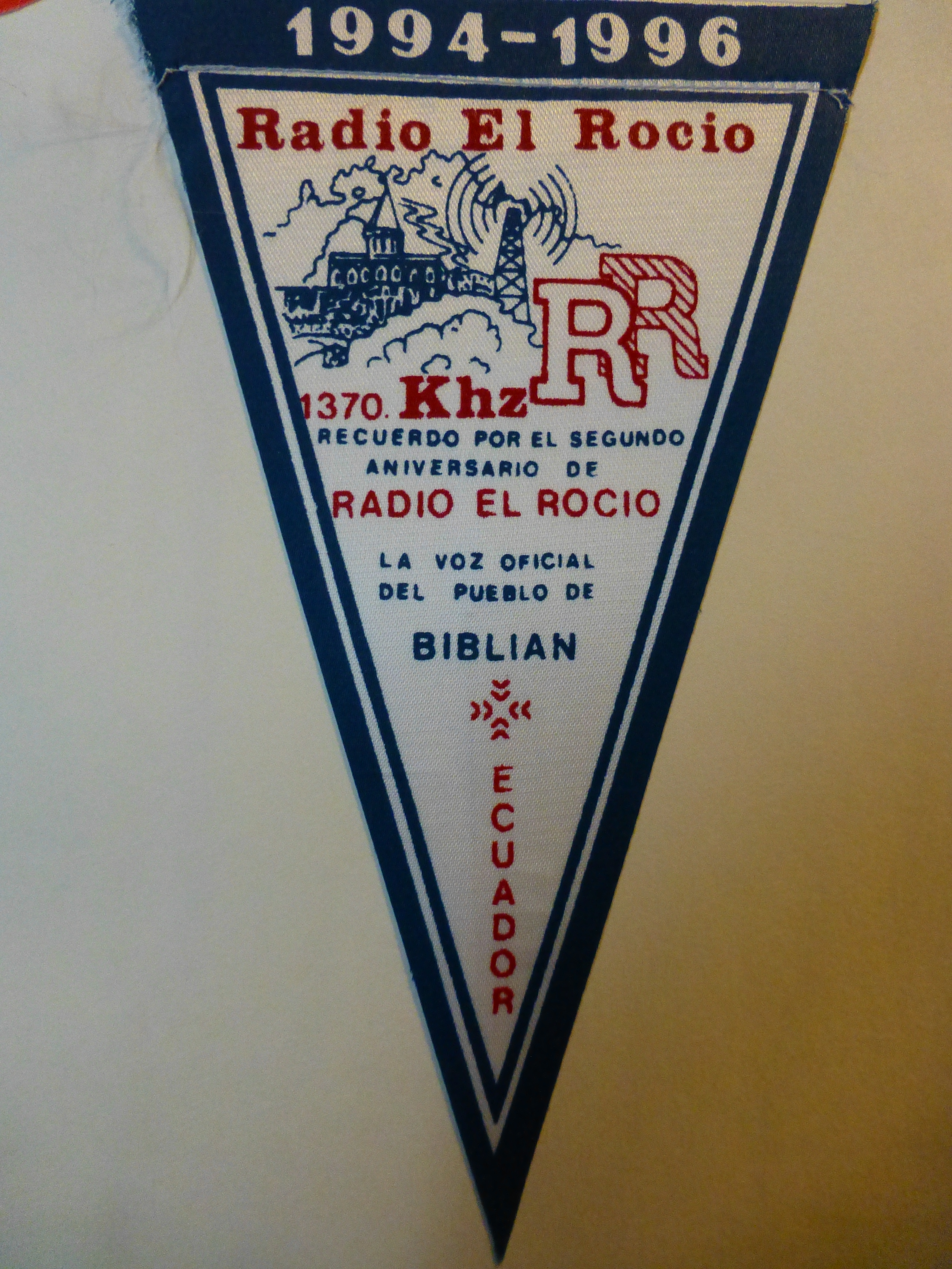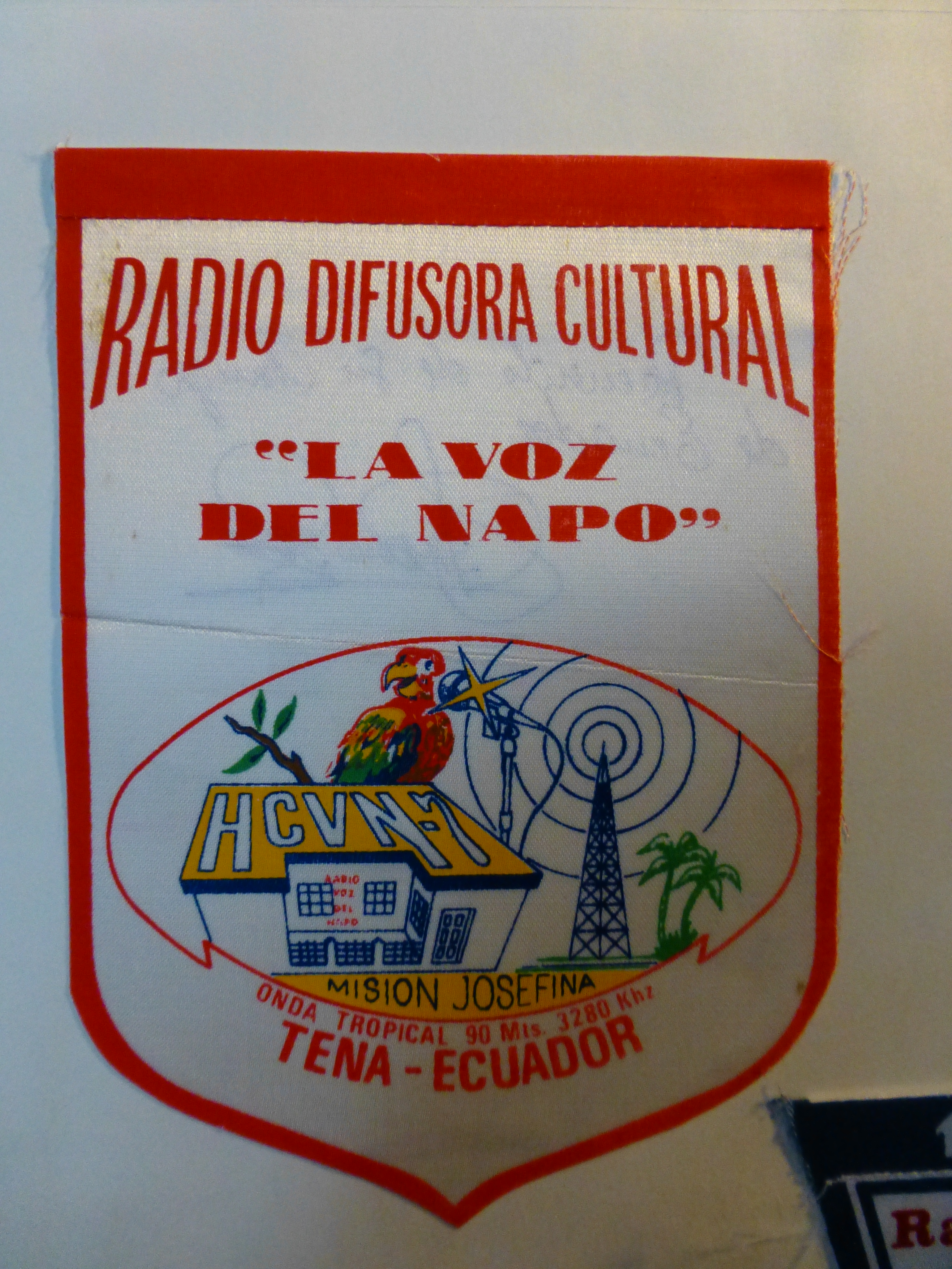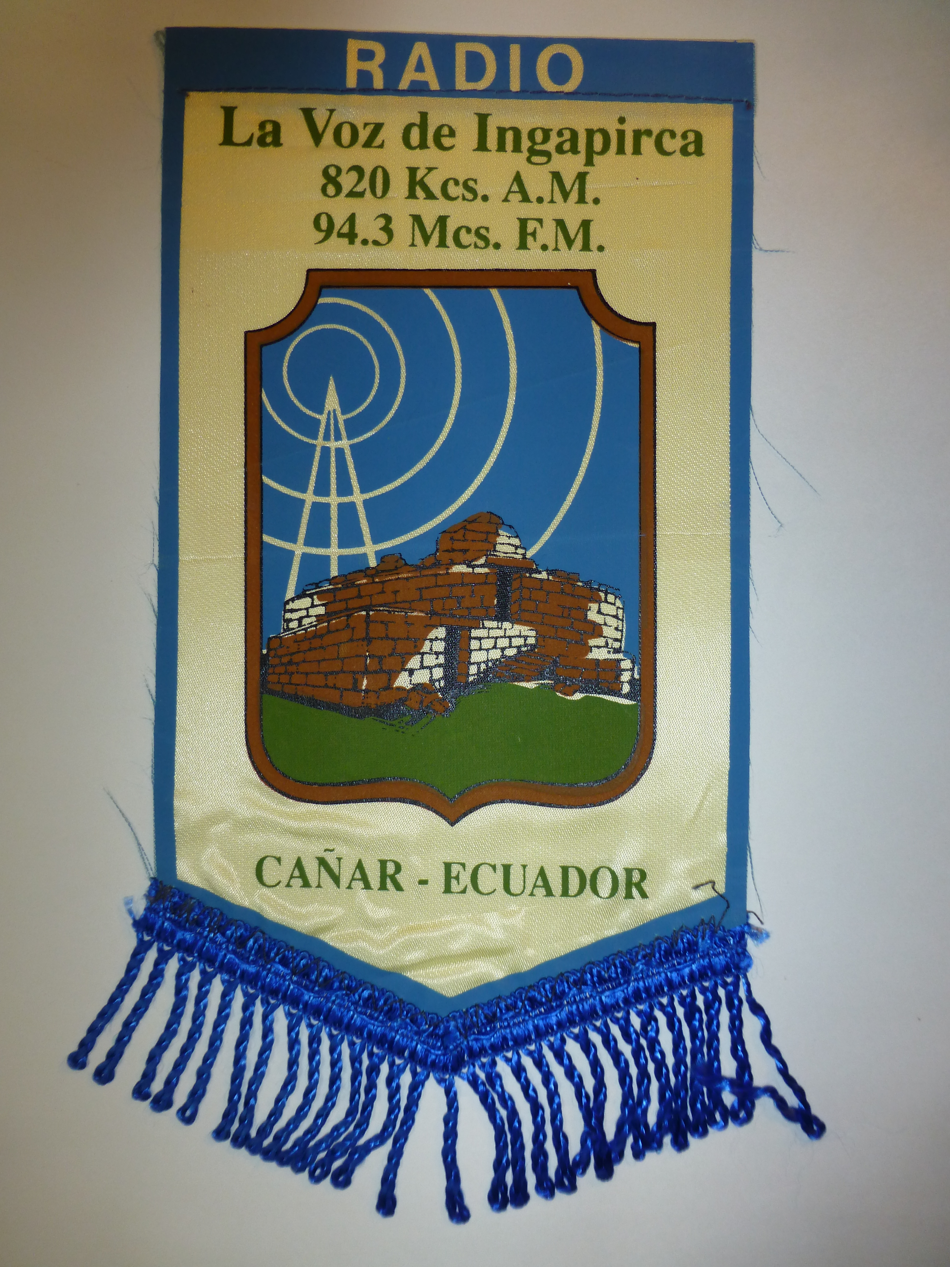 Some pennants from some stations in Ecuador; Canal Manabita 4815; Emisoras Gran Colombia 4920; HCJB; Escuelas Radiofónicas Populares 3985; La Voz de Ingapirca 1560; Sistem de Emisoras Atalaya 4790; R Zaracay 3395; R Baha’i 4950; La Voz del Napo 3280; R El Rocio 1370.